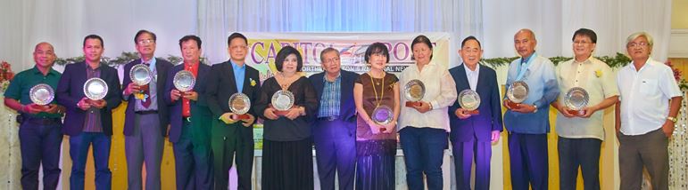 CAPITOL POST’S 2015 NEWSMAKERS RECOGNIZED. Capitol Post Publisher Mita Sison – Duque (6th from left) and editor-in-chief Jun Velasco (7th from right) savor a light moment with the honorees of Capitol Post’s Top Newsmakers Awards during the 2nd year anniversary celebration of the publication held on January 21 at the President Hotel in Lingayen. Former House Speaker Jose De Venecia (4th from right), who also served as guest of honor and speaker during the awarding rites, led the honorees that also include: Governor Espino and Board Member and Liga ng mga Barangay Provincial President Amado “Pogi” Espino, III whose awards were received by Provincial Information Officer Orpheus Velasco (2nd from right); Dagupan City Mayor Belen Fernandez (5th from right); Harvent School Founder-Director Margarita Hamada (6th from right; Philippine Fish Producers’ Association President Eduardo Maramba (3rd from right); Confederation of Ilocanos International Chairman Julius Magno (3rd from left) and two-time Tour of Luzon champion Jesus Garcia (4th from left). Other personalities in the photo were: representatives who received awards on their behalf of other honorees, and veteran media practitioner Ruel Camba (extreme right) /Photo by DManaois