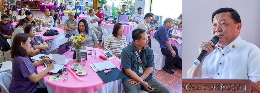 HEIs UNITE TO SET UP CENTER FOR PANGASINAN STUDIES. Governor Amado T. Espino, Jr. (right) exhorts top officials and research experts from various higher education institutions (HEIs) in Pangasinan and some provincial government department heads (left photo) that all projects undertaken by his administration are anchored on developing “a strong sense of pride and dignity as Pangasinenses, especially the younger generation” during the opening program of the special workshop for the establishment of Center for Pangasinan Studies (CPS) held on January 20 at the Capitol Resort Hotel in Lingayen. Said seminar organized by the provincial government and the University of the Philippines (UP) was attended by UP – VP for Public Affairs Prospero De Vera; UP Baguio Chancellor Raymundo Rovillos, I Love Pangasinan Movement Convenor Perla Legazpi, Mr. Rafael Howard Baraan, Samahang Pang-Kasaysayan (SAMPAKA) ng Bulacan President Jimmy Veneracion and other executives from the following HEIs: University of Luzon (UL), Lyceum Northwestern University (LNU), University of Pangasinan (UPang) Phinma; Colegio De Dagupan (CDD) and Virgen Milagrosa University Foundation (VMUF). /Photos by GMoran and DManaois