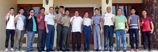 GATE WITH PMA’S 2016 TOP GRADS FROM PANGASINAN. Governor Amado T. Espino, Jr. (center) flashes the Pangasinan number one sign with three top members of the 2016 Gabay-Laya Class of the Philippine Military Academy (PMA) who hail from Pangasinan, PMA mentors and under class members of the PMA who are also from the province during a courtesy call on the Governor held at the Urduja House on March 17. The PMA graduates from Pangasinan are led by 2Lt. Christine Mae Calima (6th from right) of Arnedo, Bolinao who ranked second among the 63-member PMA Gabay Laya class; top 9 – 2Lt. George Bernard Garcia (6th from left) of Bongalon, Labrador; and top 12 – 2Lt. Albert Junio (7th from left) from Lumayao, San Quintin. Joining them are: Col. Carlo Resurrecion, (3rd from right) Col. Ryan Celina, (4th from right) Major Ryan Igama (5th from left); Col. (Ret.) Rhodyn Lochinvar Oro Provincial Disaster Risk Reduction and Management Office (PDRRMO) Chief (3rd from left); and Mr. Edward Calima (4th from left), father of Christine. /Photo by MVSadim