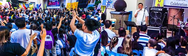 Governor Amado T. Espino, Jr. (right photo) commends thousands of participants (left photo) of the March for Jesus for advocating love for Jesus Christ as he also exhorts them to love their province.  The March for Jesus came from various parts of Pangasinan representing various Christian denominations who converged at the grounds of the old City Hall of Urdaneta last March 19 for a short program.