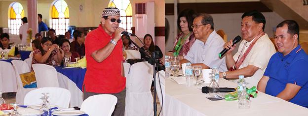 GATE AT PRESIDENT HOTEL. Governor Amado T. Espino (right photo, 2nd from right) answers a question posed by one of the members of the Muslim community (left photo) during the launching of The President Hotel Breakfast Club in Lingayen last August 13. Joining the Governor at the right photo are (from right): Lingayen Vice Mayor Nepthalie Pasilliao, Veteran Journalist Jun Velasco and Capitol Post Publisher Mita Duque. /MVSadim