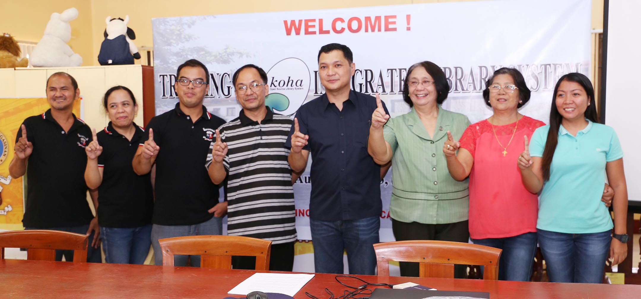 City and Municipal Librarians undergo Integrated Library System Training. Board Member and Liga ng mga Barangay Provincial President Amado “Pogi” I. Espino, III (4th from right) flashes the number one sign with various city and municipal librarians during the culmination of the two-day KOHA Integrated Library System Training at the Provincial Library last August 13. Joining BM Espino is Provincial Librarian Lolita delos Santos (3rd from right). Photo by: MVSadim