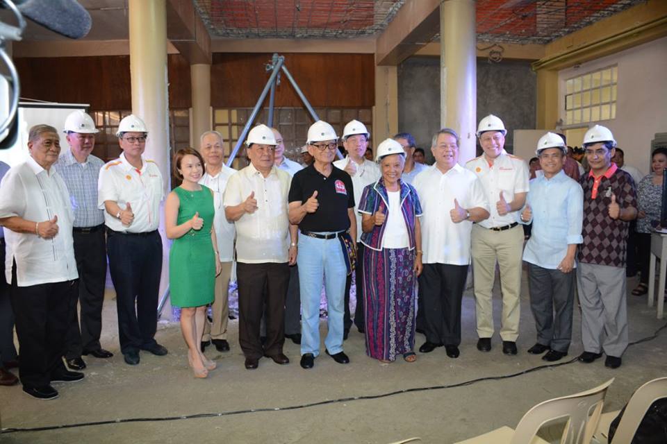 MODERN LIBRARY TO RISE IN DAGUPAN CITY. Former President of the Philippines Fidel V. Ramos (6th from left, left photo) along with Governor Amado T. Espino, Jr. (4th from left) and PHINMA Corporation President and CEO Ramon Del Rosario Jr., (4th from right) gesture the well-known ‘thumbs up’ sign of the former Philippine President after the ground-breaking for the construction of a three-storey library building within the University of Pangasinan – PHINMA campus in Dagupan City last September 25. The modern library which is set to be inaugurated in March 2016 is expected to help preserve and promote the rich cultural heritage of Pangasinan and its people. Also present during the ground-breaking rites are:  former Senator Leticia Ramos-Shahani (center) and 6th District Board Member Ranjit Ramos-Shahani (right) along with former members of Ramos’ Cabinet, and officials and benefactors of the host University. /Photo by BSison